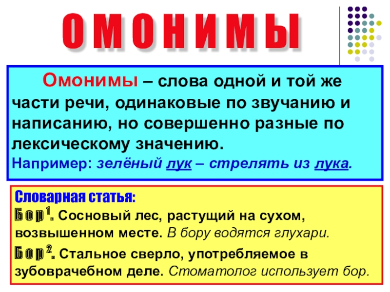 Омофоны — слова, которые звучат одинаково, но пишутся по-разному и имеют разное значение.