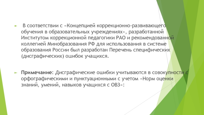 Слайд 3 В соответствии с «Концепцией коррекционно-развивающего обучения в образовательных учреждениях», разработанной