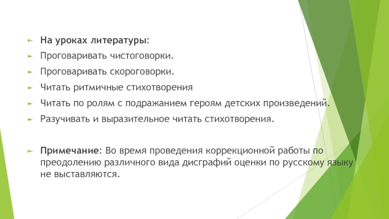 Примечание: Во время проведения коррекционной работы по преодолению различного вида дисграфий оценки по русскому языку не выставляются.