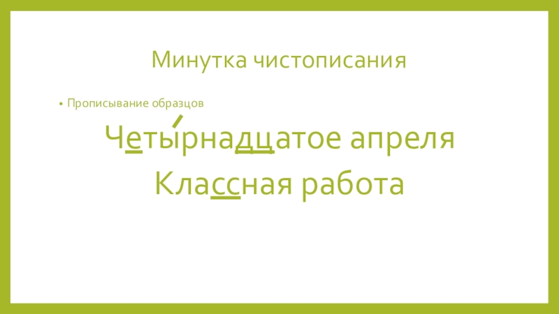 Минутка чистописанияПрописывание образцовЧетырнадцатое апреляКлассная работа