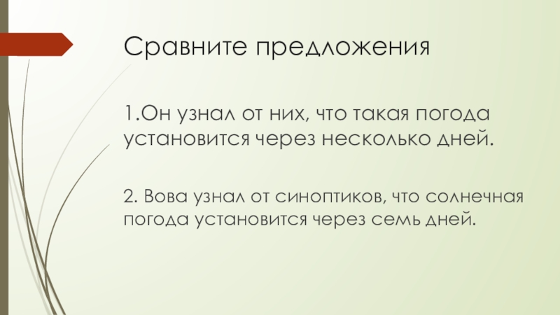 Сравните предложения1.Он узнал от них, что такая погода установится через несколько дней.2. Вова узнал от синоптиков, что