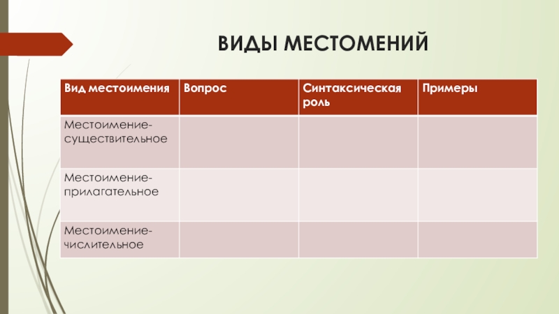 Слайд 5ВИДЫ МЕСТОМЕНИЙ