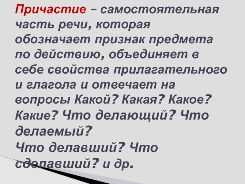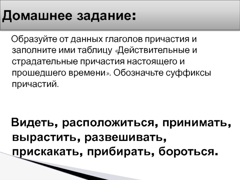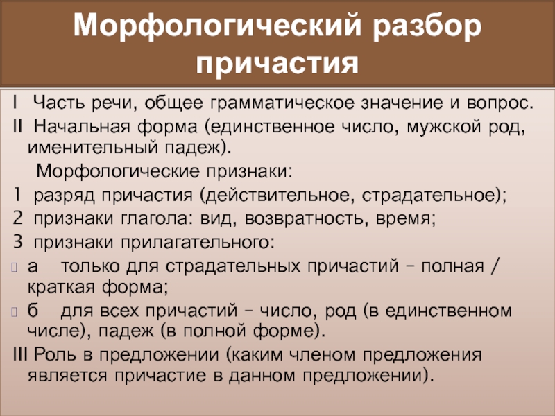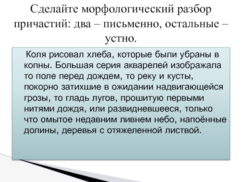 Сделайте морфологический разбор причастий: два – письменно, остальные – устно.
