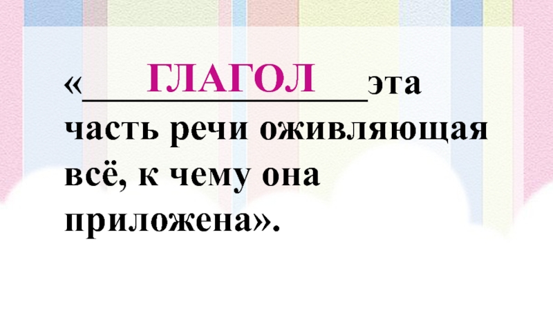 «_______________эта часть речи оживляющая всё, к чему она приложена».ГЛАГОЛ