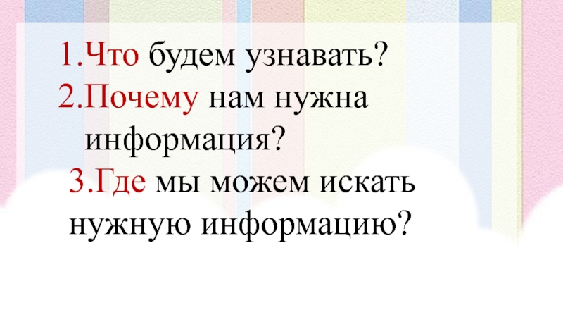 Что будем узнавать?Почему нам нужна информация?3.Где мы можем искать нужную информацию?