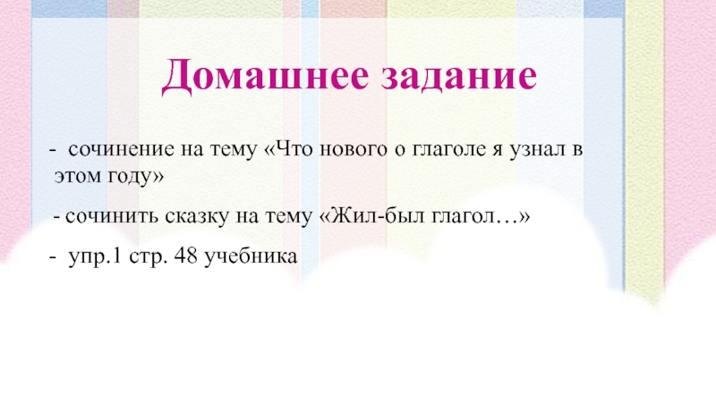 Домашнее задание- сочинение на тему «Что нового о глаголе я узнал в этом году» сочинить сказку на