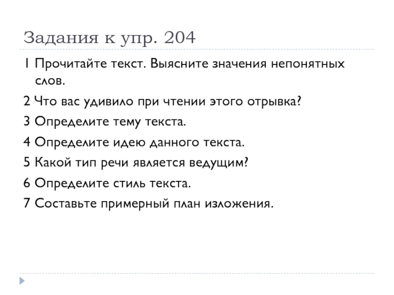 Задания к упр. 2041 Прочитайте текст. Выясните значения непонятных слов.2 Что вас удивило при чтении этого отрывка?3