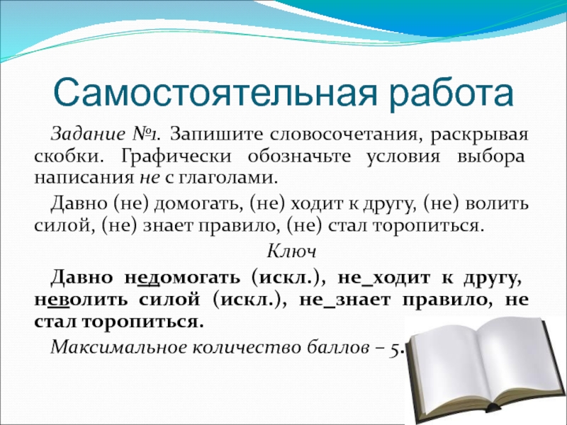 Давно недомогать (искл.), не ходит к другу, неволить силой (искл.), не знает правило, не стал торопиться.