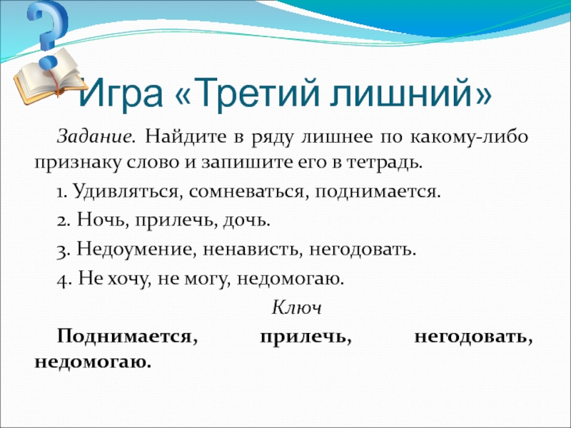Задание. Найдите в ряду лишнее по какому-либо признаку слово