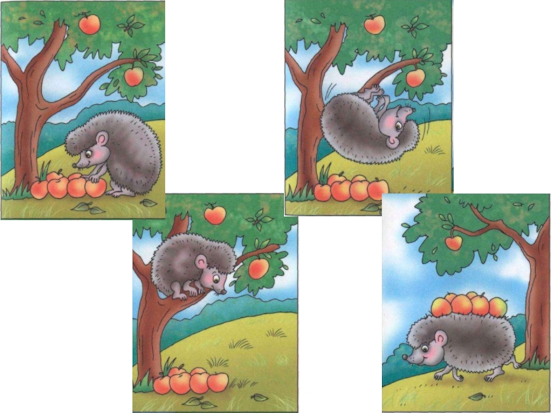 Проверь себя! Ёжик собрал урожай яблок. Зверёк залез на дерево. Он спрыгнул с ветки иголками вниз. Все