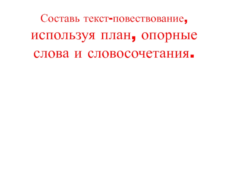 Слайд 12Составь текст-повествование, используя план, опорные слова и словосочетания.