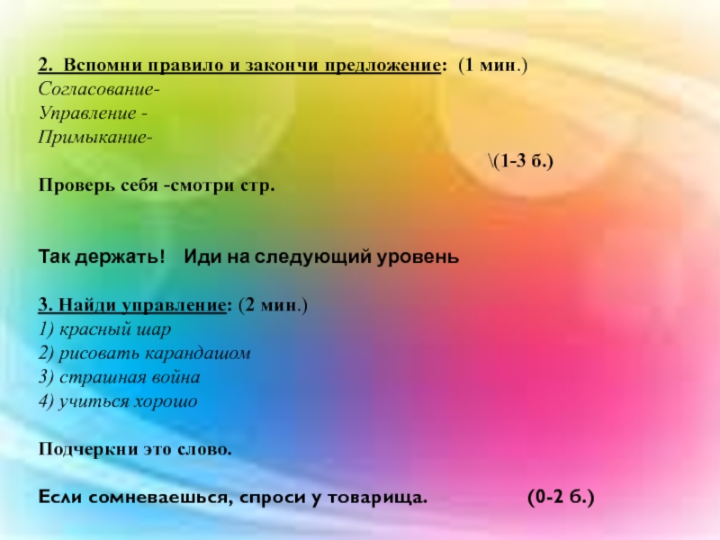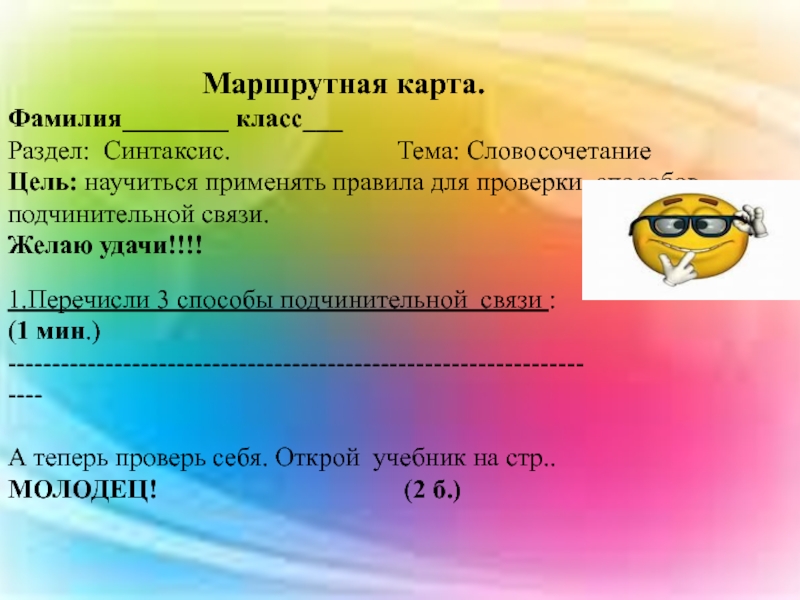 1.Перечисли 3 способы подчинительной связи : (1 мин.)