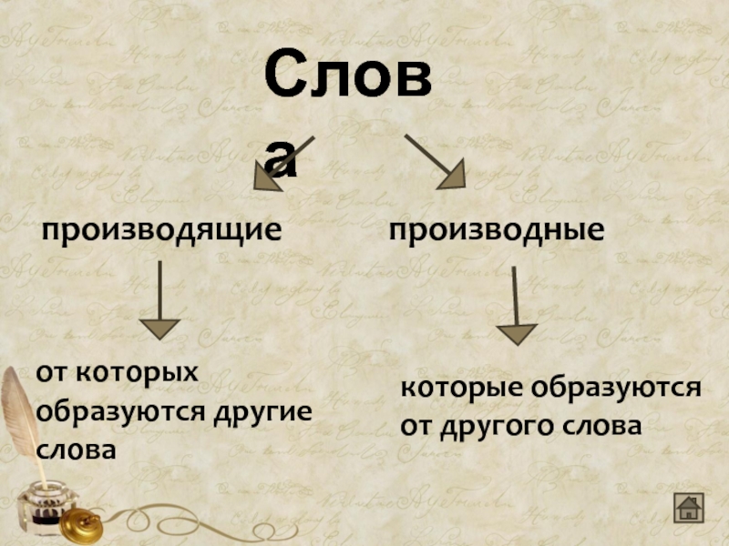 Словапроизводящиепроизводныеот которых образуются другие словакоторые образуются от другого слова