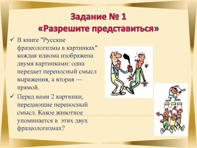 Перед вами 2 картинки, передающие переносный смысл. Какое животное упоминается в этих двух фразеологизмах?