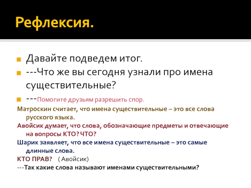 Матроскин считает, что имена существительные – это все слова русского языка.