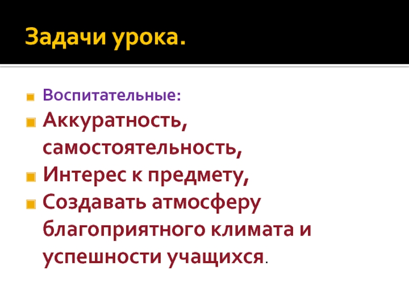 Создавать атмосферу благоприятного климата и успешности учащихся.