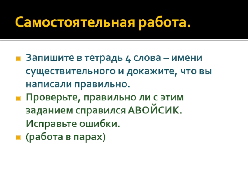 Запишите в тетрадь 4 слова – имени существительного и докажите,