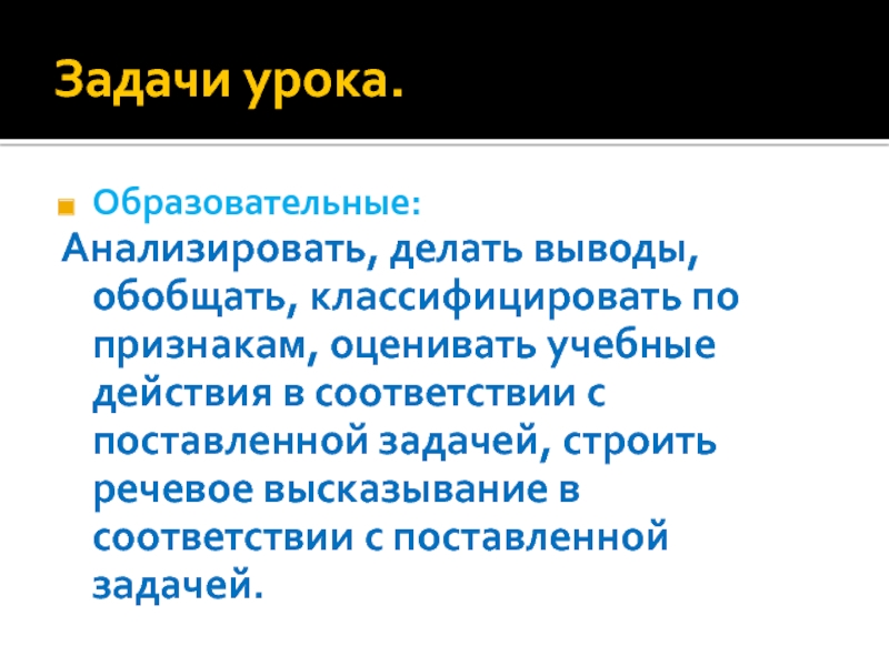 Анализировать, делать выводы, обобщать, классифицировать по признакам, оценивать учебные действия