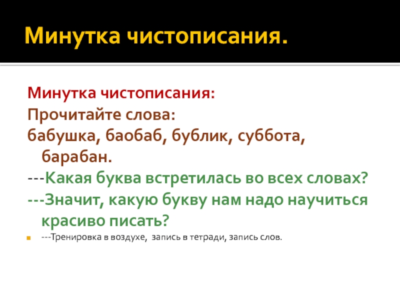 ---Тренировка в воздухе, запись в тетради, запись слов.