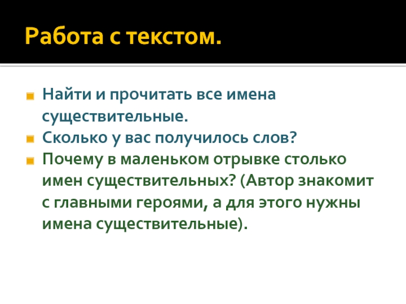 Почему в маленьком отрывке столько имен существительных? (Автор знакомит с главными героями, а для этого нужны имена существительные).