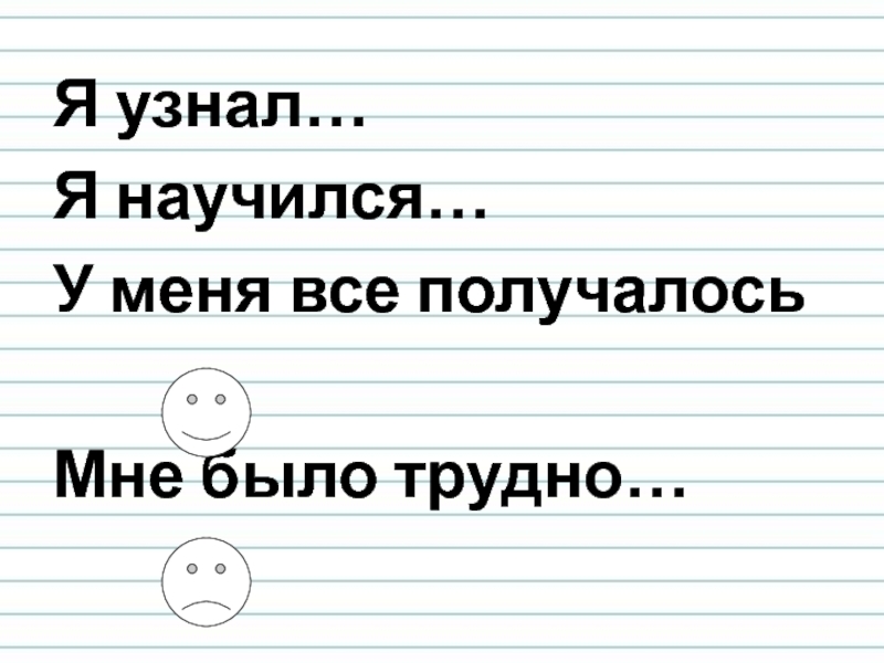 Я узнал…Я научился…У меня все получалосьМне было трудно…