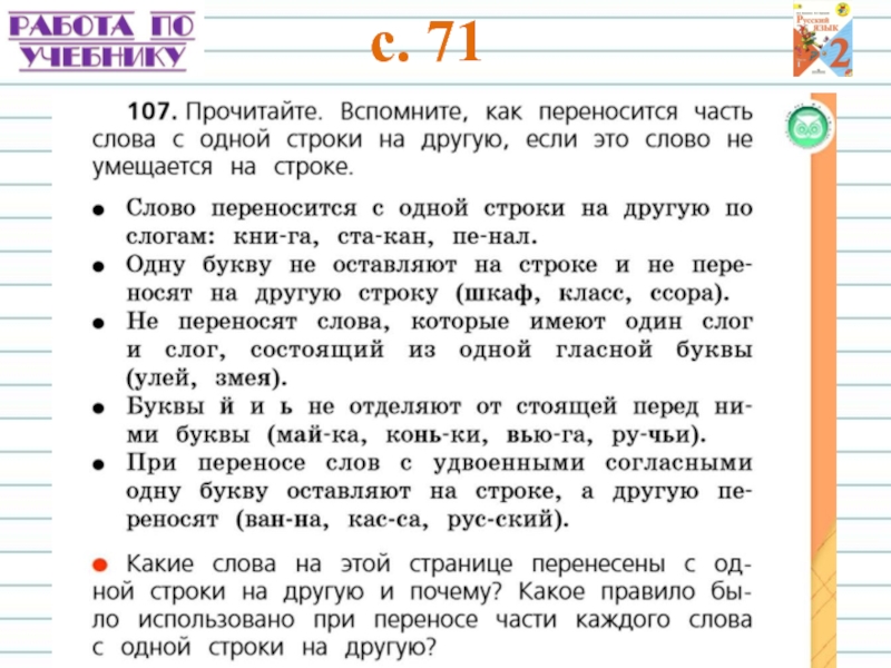 Презентация, доклад по русскому языку на тему Как переносить слова с одной строки на другую (2 класс)
