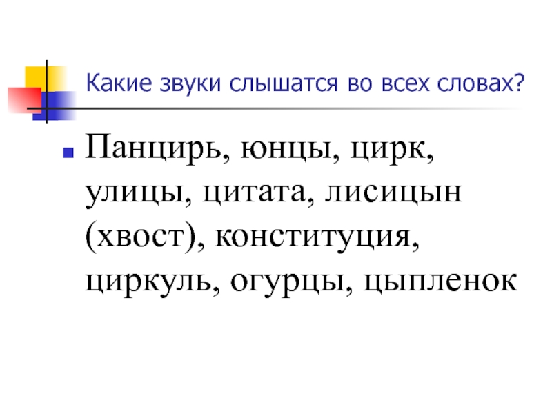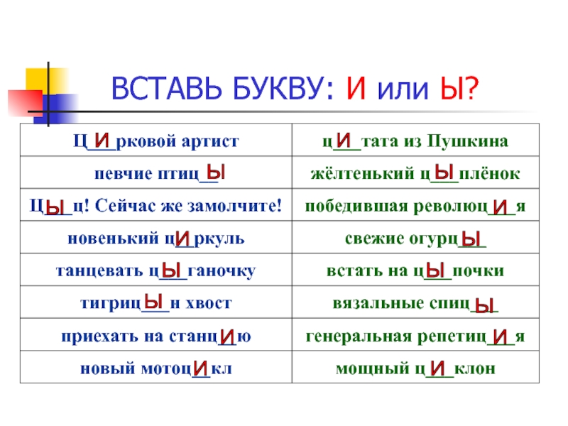 Цыган, на цыпочках, цыплёнок, цыкнуть, цыц.
