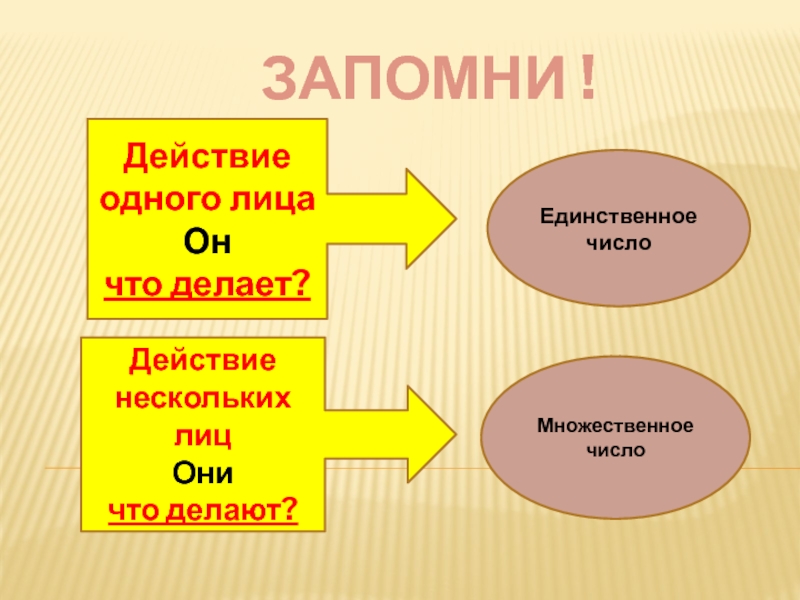 Глаголы в ед. ч. обозначают действие одного предмета.