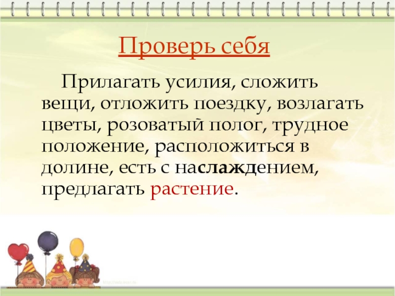 возлагать цветы, розоватый полог, трудное положение, расположиться в долине, есть с наслаждением, предлагать растение.