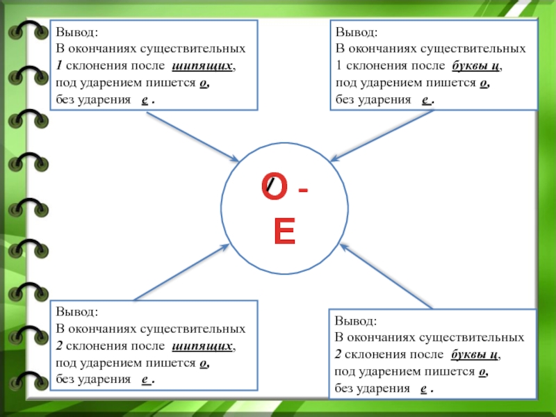 2 склонения после шипящих,