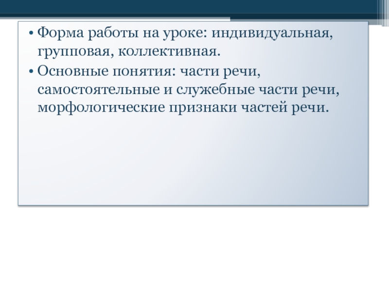 Основные понятия: части речи, самостоятельные