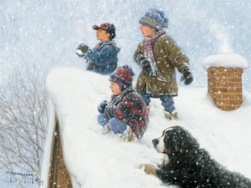Детвора, здорово, скатиться, изваляться, в снегу, поскользить, поиграть, в снежки, слепить, снеговика