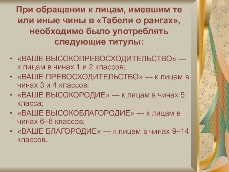 При обращении к лицам, имевшим те или иные чины в «Табели