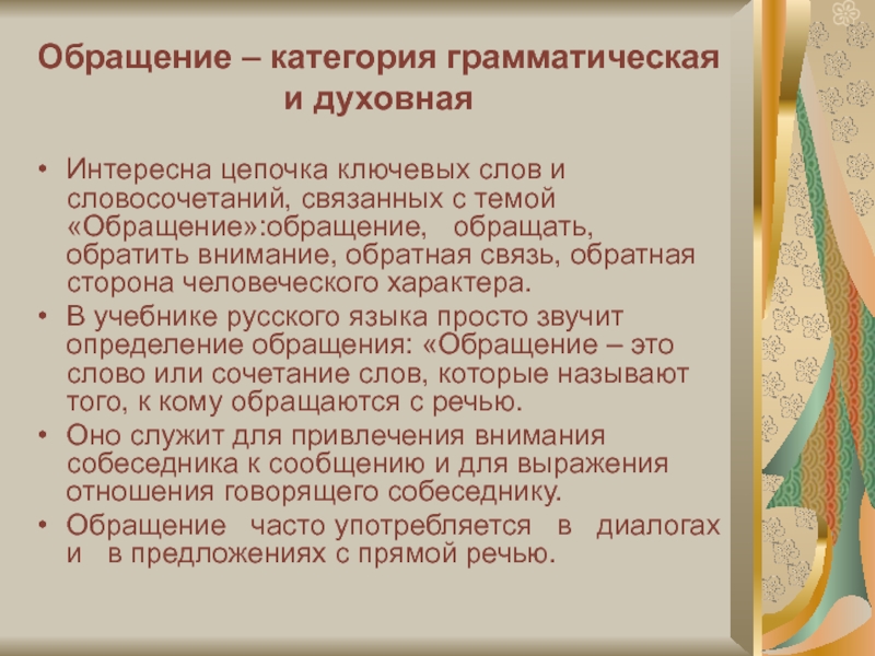 связанных с темой «Обращение»:обращение, обращать, обратить внимание, обратная связь, обратная сторона человеческого характера.