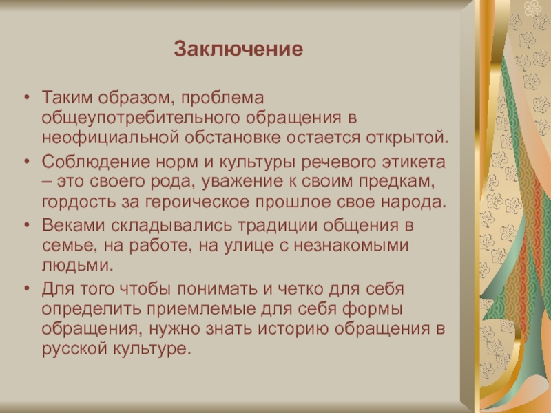 Слайд 23Таким образом, проблема общеупотребительного обращения в неофициальной обстановке остается открытой.