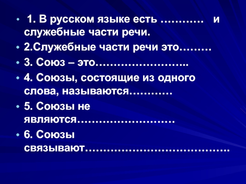 Слайд 3 1. В русском языке есть ………… и служебные части