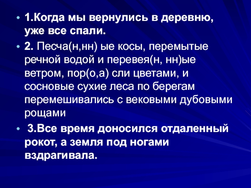 Слайд 251.Когда мы вернулись в деревню, уже все спали.