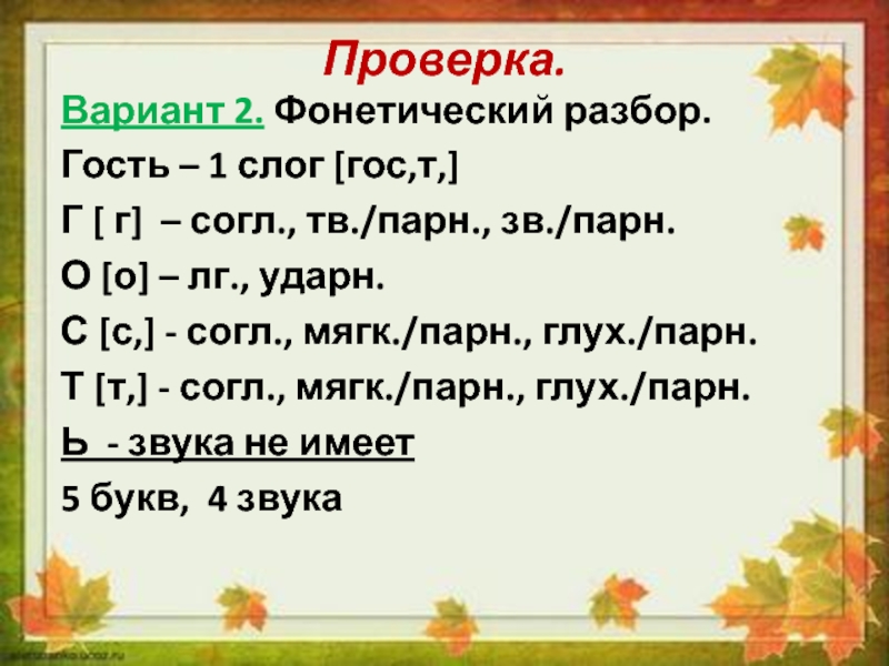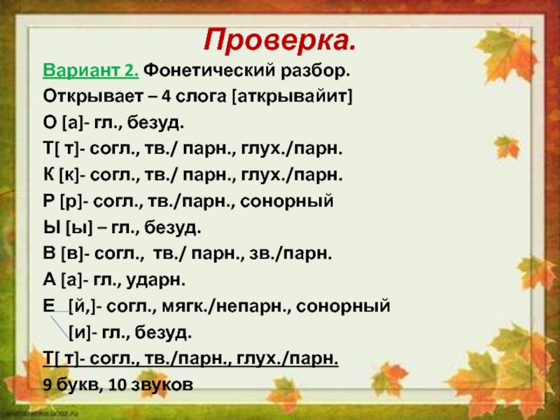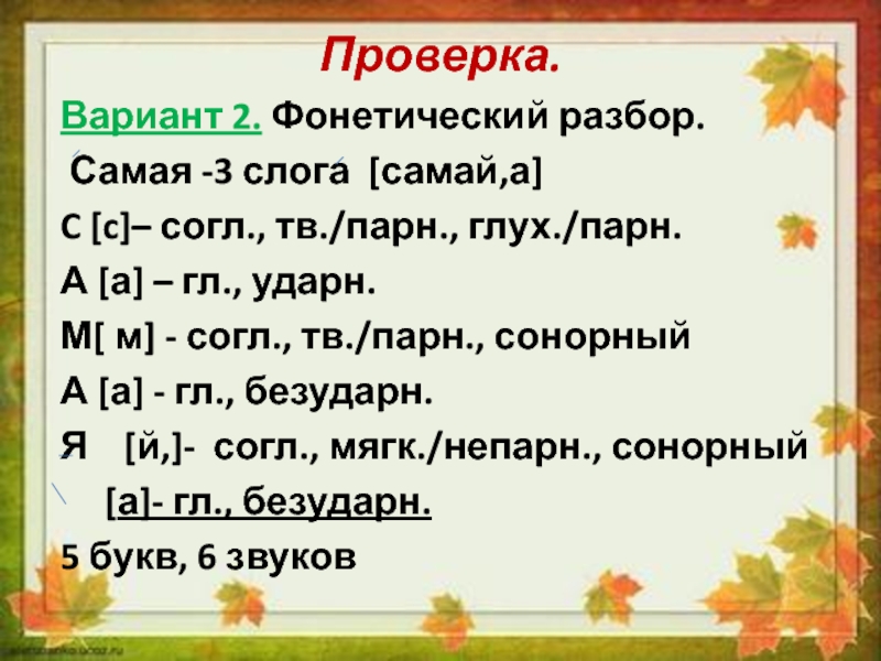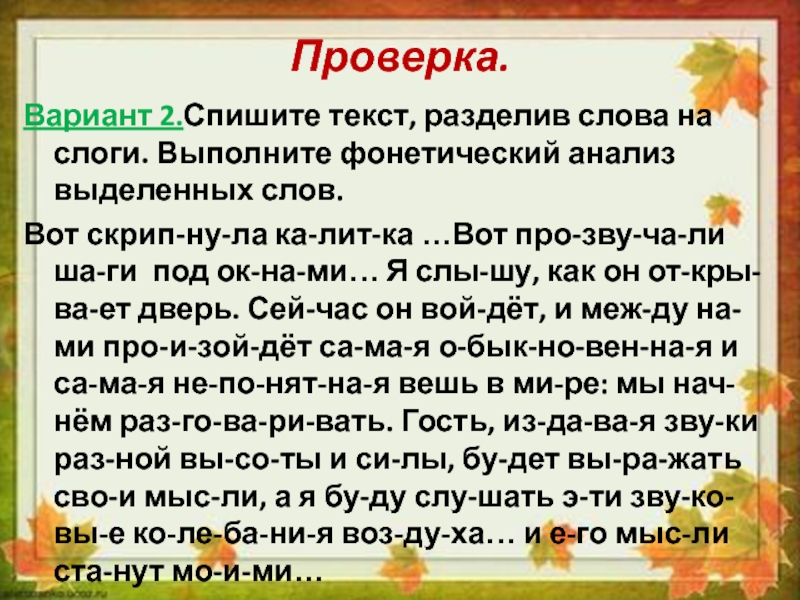 Вариант 2.Спишите текст, разделив слова на слоги. Выполните фонетический анализ выделенных