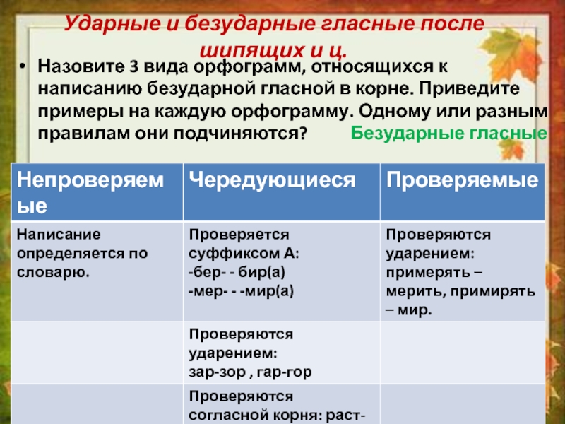 Слайд 9Ударные и безударные гласные после шипящих и ц.