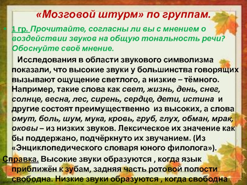 о воздействии звуков на общую тональность речи? Обоснуйте своё мнение.