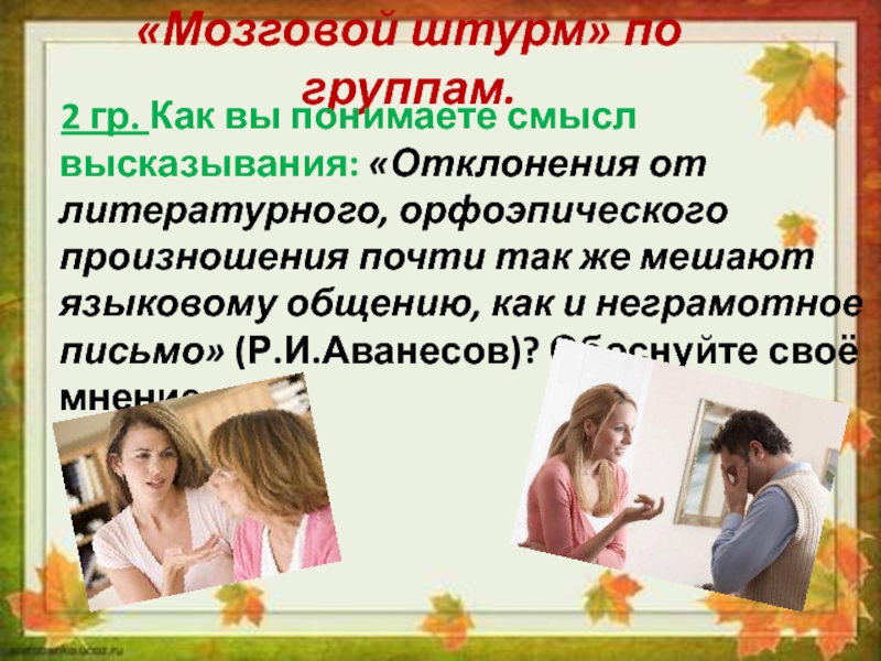 высказывания: «Отклонения от литературного, орфоэпического произношения почти так же мешают языковому общению, как и неграмотное письмо» (Р.И.Аванесов)? Обоснуйте своё мнение.