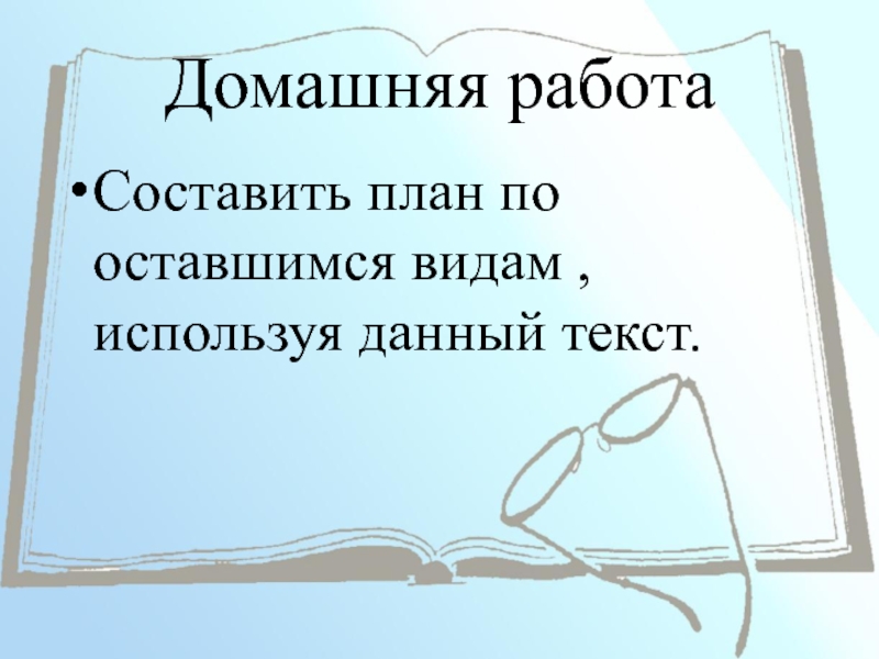 Домашняя работаСоставить план по оставшимся видам ,используя данный текст.
