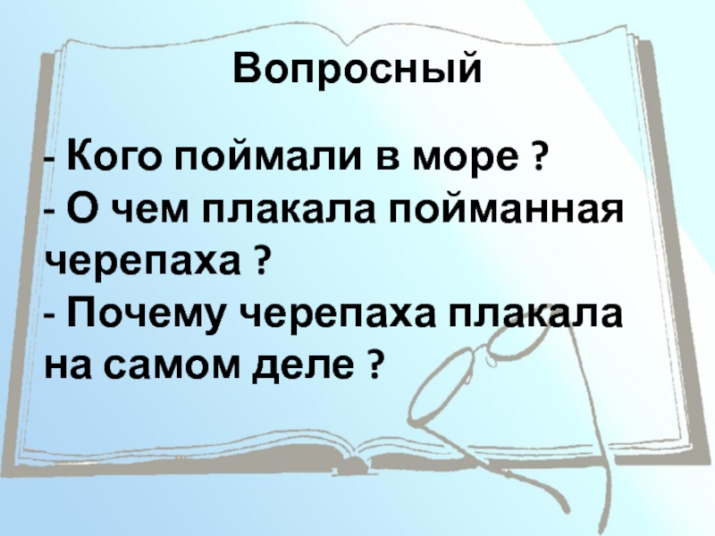 Вопросный - Кого поймали в море ? - О чем плакала пойманная черепаха ? - Почему черепаха