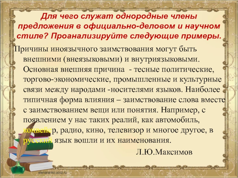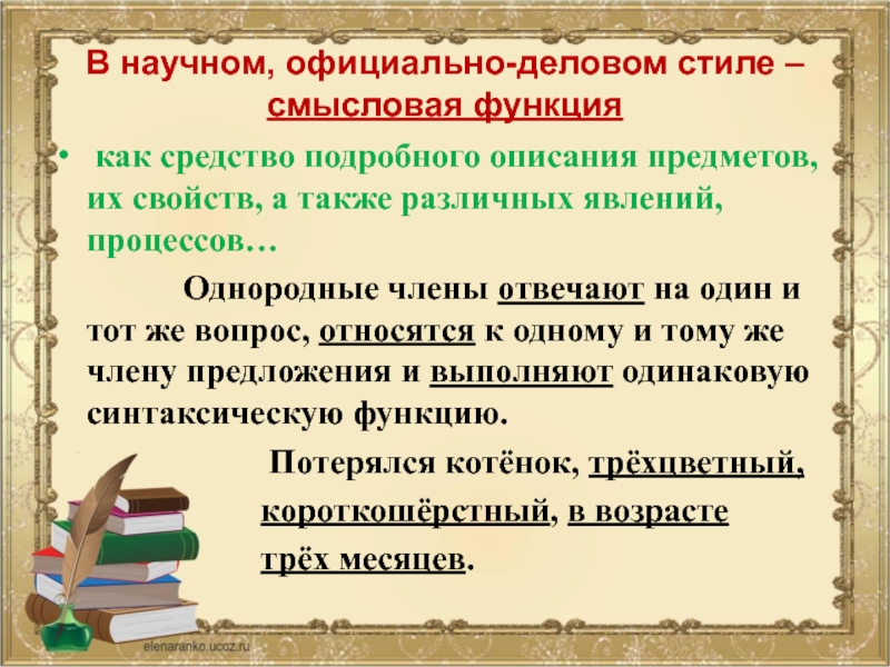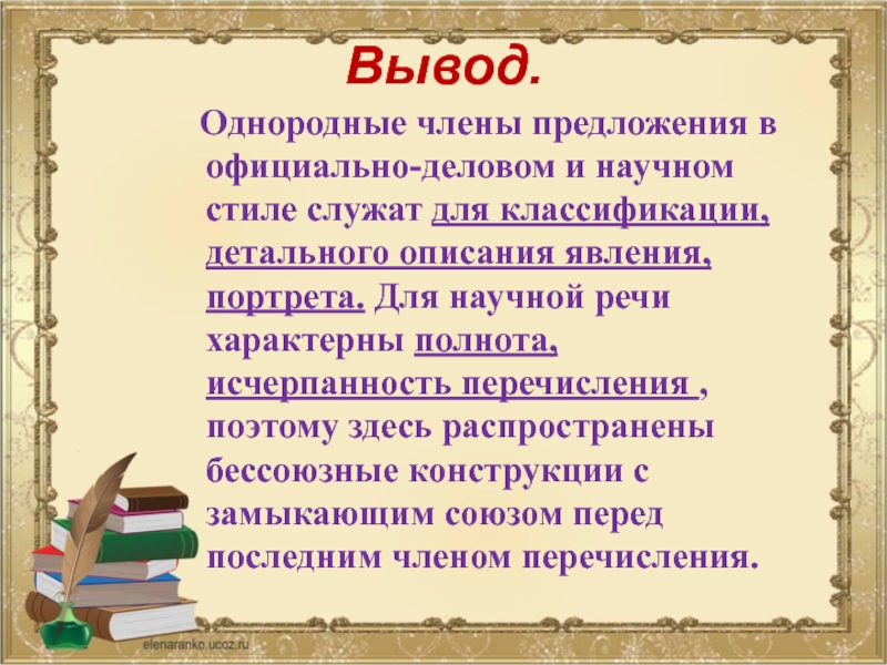 Однородные члены предложения в официально-деловом и научном стиле служат