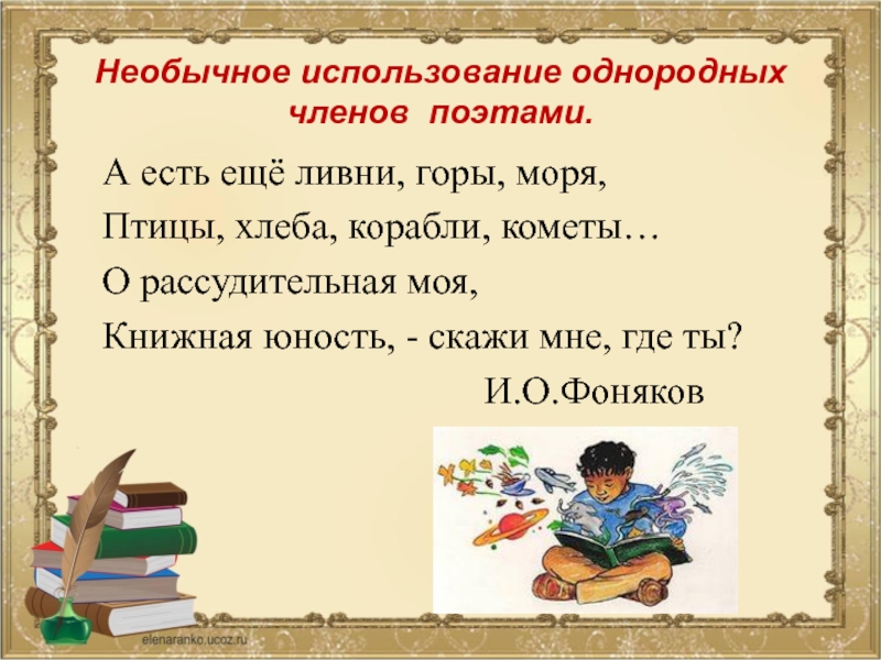 Слайд 12Необычное использование однородных членов поэтами.