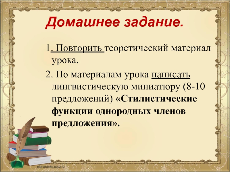 написать лингвистическую миниатюру (8-10 предложений) «Стилистические функции однородных членов предложения».