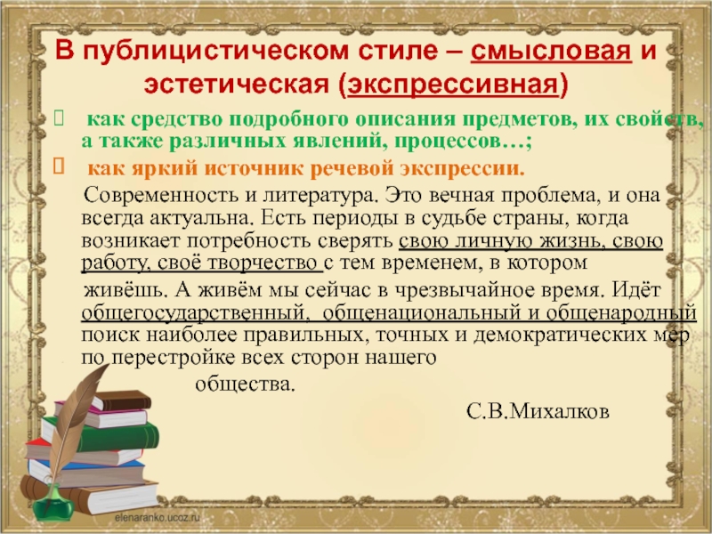 Слайд 10В публицистическом стиле – смысловая и эстетическая (экспрессивная)