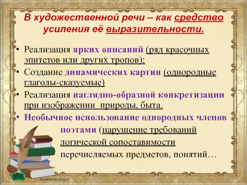 различных стилей , что однородные члены предложения могут являться одним из синтаксических средств выразительности речи.