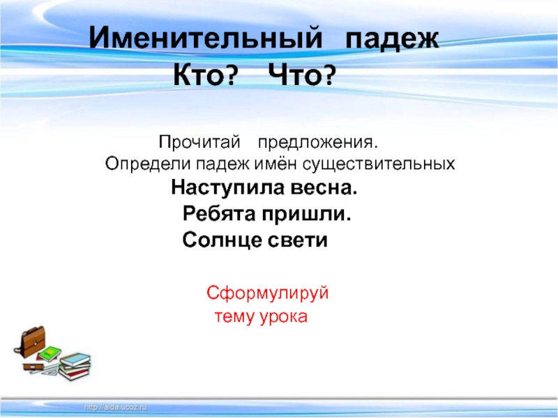Презентация, доклад по русскому языку на тему Именительный падеж.(4 класс)