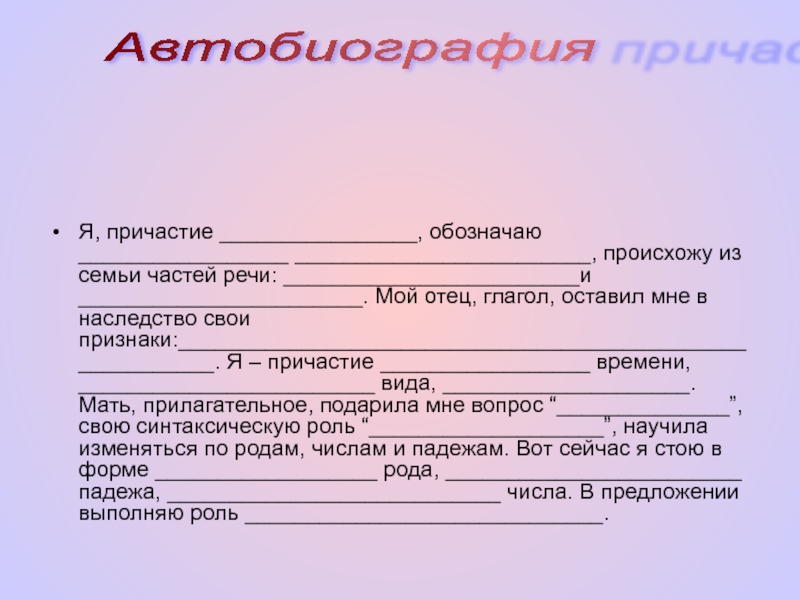 Причастие - особая форма глагола, которая имеет признаки прилагательного и глагола,